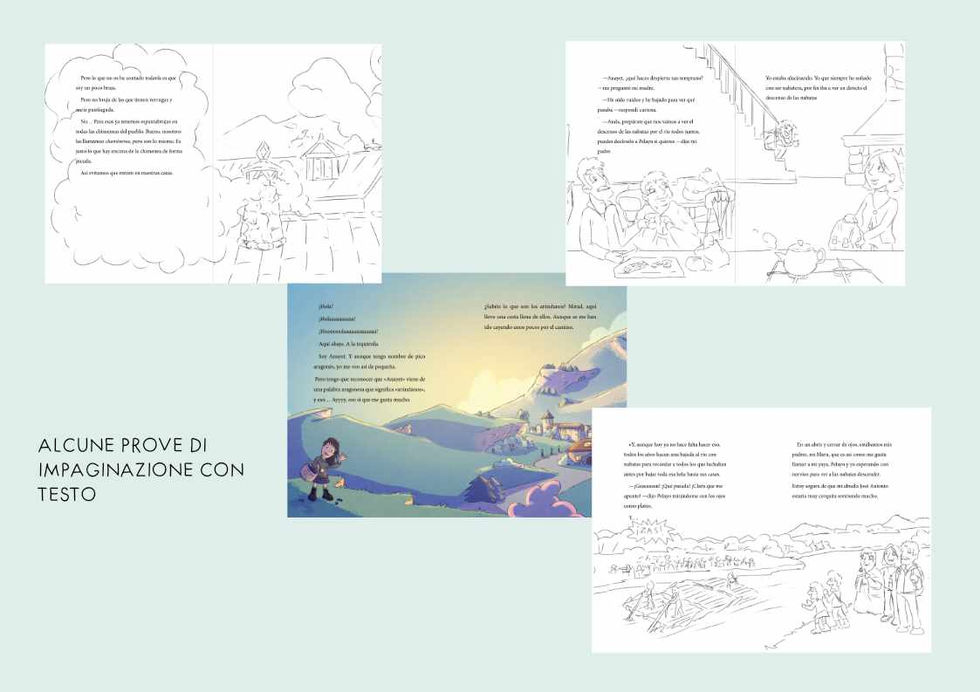 Ho pensato e realizzato le illustrazioni cercando di creare un atmosfera fiabesca e un ritmo vivace.